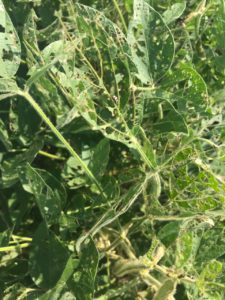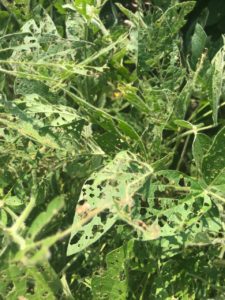 These pictures were taken just this past Friday in Eastern Illinois. The grower was taken aback at how severe this damage from Bean Leaf beetles has become and in such a short amount of time. At a time when many farmers are looking forward to harvest beginning a few weeks down the road, we cannot become complacent about what is happening in your fields. If the crop is not in the bin, the opportunity for loss is still present. At this moment, your soybeans fields look like an all-you-can-eat buffet for pests like bean leaf beetle, stinkbugs, Japanese beetles, grasshoppers, Corn Rootworm beetles, Fall Armyworm, and more.