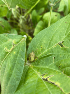 Stink bugs don’t cause great visual damage to the pod. Their piercing mouthparts leave little to be viewed except for the resulting damaged seeds from the digestive enzymes they inject.